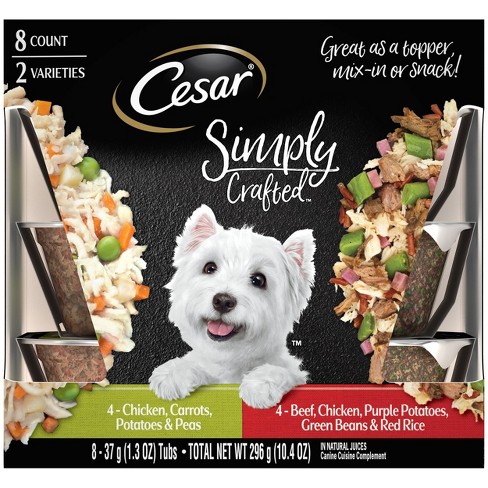 Amazon Com Cesar Simply Crafted Adult Soft Wet Dog Food Meal Topper Chicken Carrots Green Beans 10 1 3 Oz Tubs Everything Else